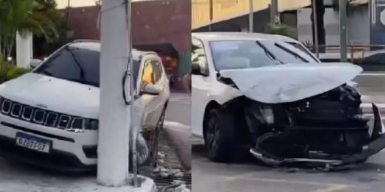 O Jeep Compass levou a pior no cruzamento. As imagens viralizaram nas redes sociais, porém ninguém soube informar de quem foi a culpa pela batida.