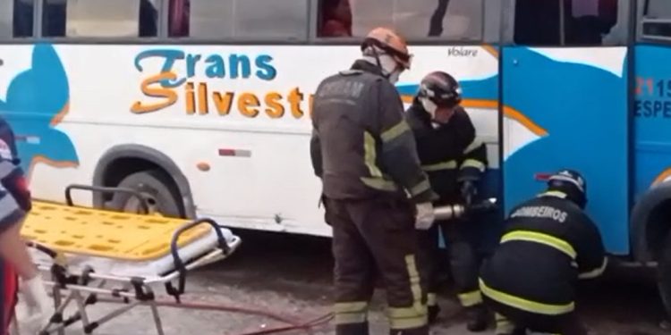 Os bombeiros usaram equipamentos especiais para cortar as portas e retirar os feridos. Um dos motoristas ficou preso nas ferragens.