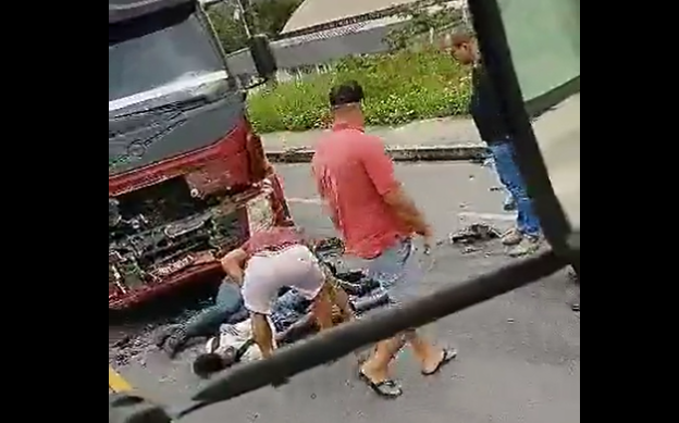 Ambos ficaram feridos e foram socorridos por populares. O condutor do caminhão não se feriu e ficou no local prestando socorro.