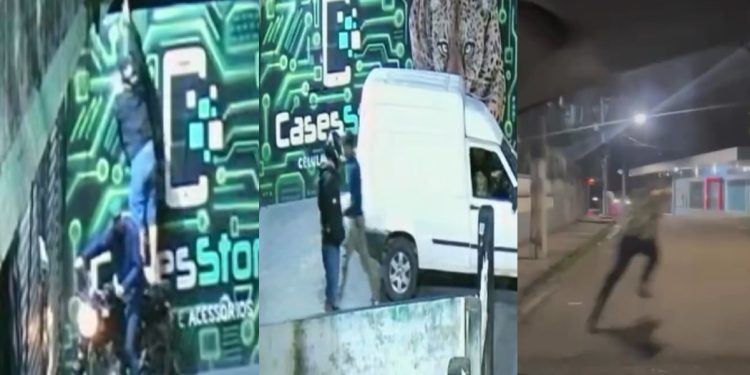 AMAZONAS – Dois bandidos bateram em retirada após o alarme tocar em Manacapuru (a 68 quilômetros de Manaus). Eles tentaram se preparar, chegaram de carro, cobriram a câmera, mas o alarme tocou.
