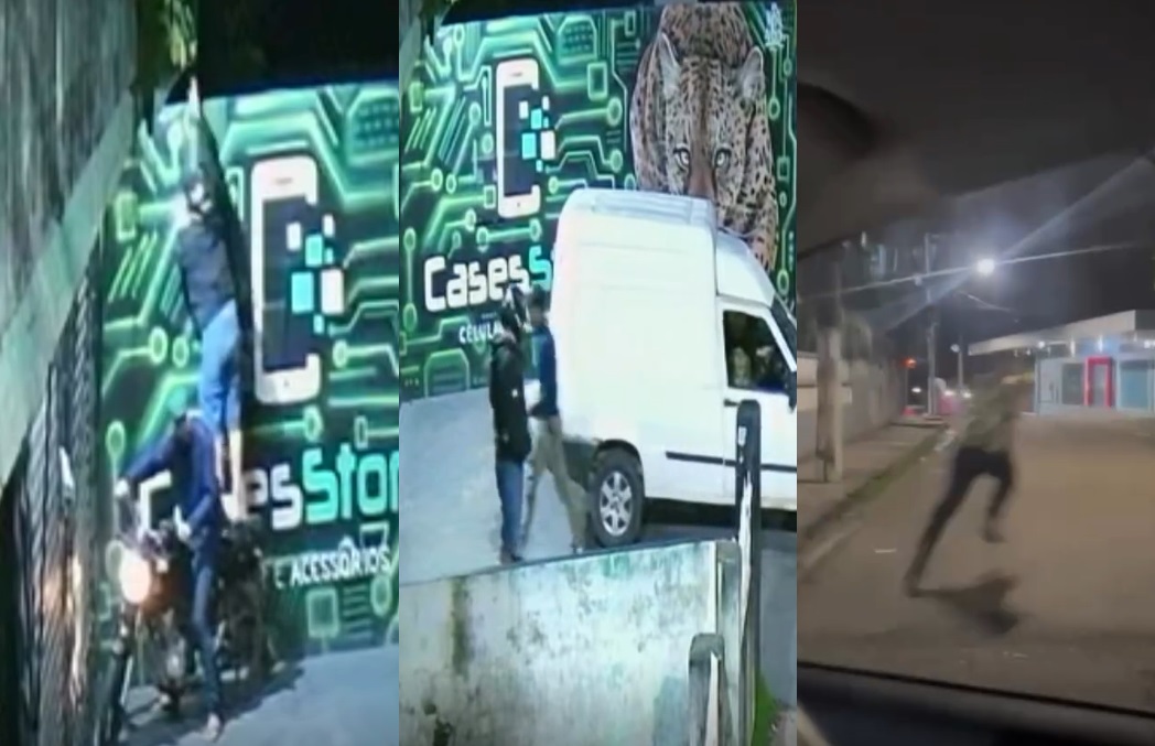 Vendo que a coisa ficou feia, já levando uns tapões, eles correram e deixaram até o carro para trás. A polícia está com as imagens para tentar localizar os meliantes.