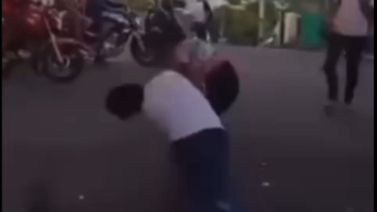 As jovens aparecem no vídeo, que foi compartilhado em grupos de Whatsapp, puxando o cabelo uma da outra enquanto os ‘amigos’ incentivam a briga.