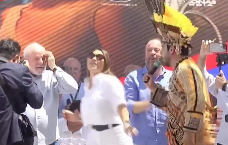 PARINTINS (AM) – Janja Silva, esteve em Parintins com o marido, o presidente Lula e se empolgou durante a apresentação dos Bumbás. A primeira-dama do Brasil acompanhou o lançamento do programa Luz Para Todos no município.