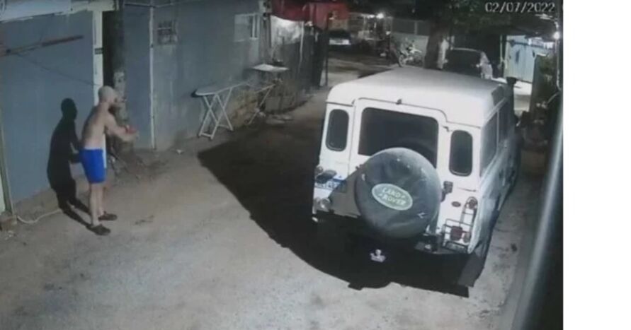 Segundo o casal, a casa ao lado pertenceria aos pais do agressor. No vídeo, flagrado por câmeras de segurança, é possível ver o momento em que Leandro fica ferido com a mão pendurada.