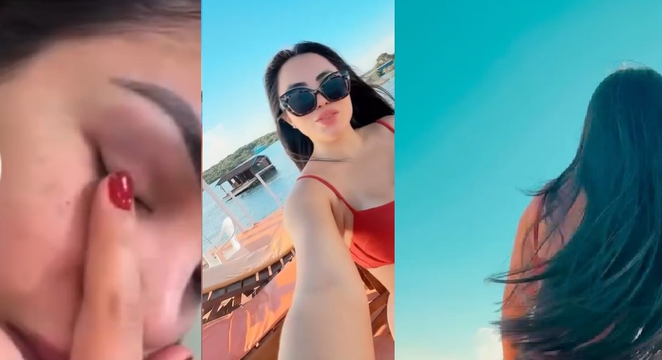Apareceu rebolando na beira do Rio, de fio-dental e ironizando a mulher que bateu nela. “Se tava talaricando um soco foi pouco]’, comentou umamulher.