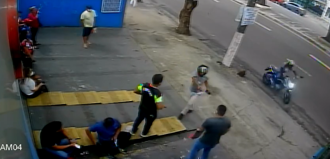 MANAUS (AM) – Logo de manhã cedo, por volta das 7h, pessoas que aguardavam atendimento em uma clínica de saúde foram vítimas de um arrastão na avenida Getúlio Vargas, no Centro da cidade de Manaus, nesta quinta-feira (10). Todo o roubo foi filmado por câmera de segurança do local.