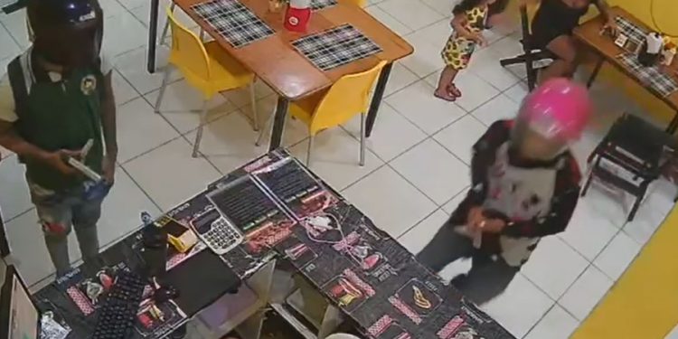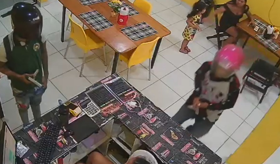 MANAUS – Um assalto gerou desespero e medo em uma mãe na noite desta quinta-feira (18), no bairro Cidade Nova, zona norte de Manaus. A mulher foi abordada por dois bandidos enquanto comia com a menina pequena, que ficou visivelmente assustada diante da cena.