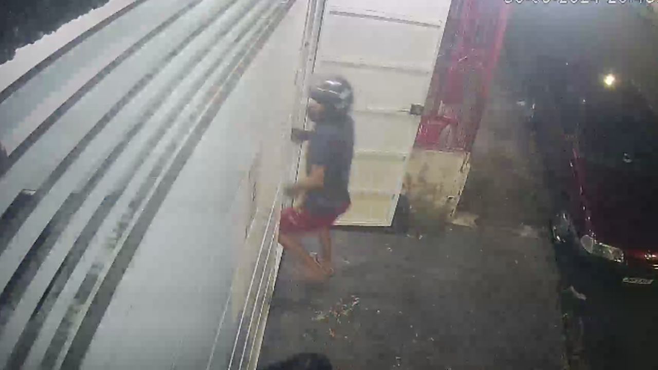 Na filmagem, assim que elas avistam o rapaz de capacete, armado e indo em direção a residência, duas delas correm para dentro.