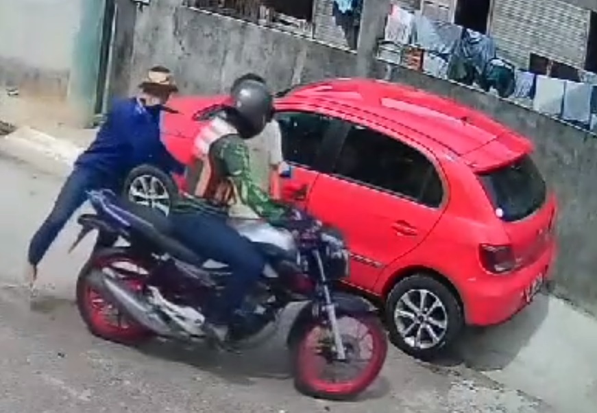 O crime foi registrado por uma câmera de segurança do bairro, mostrando a covardia dos bandidos, que até agora não foram presos.