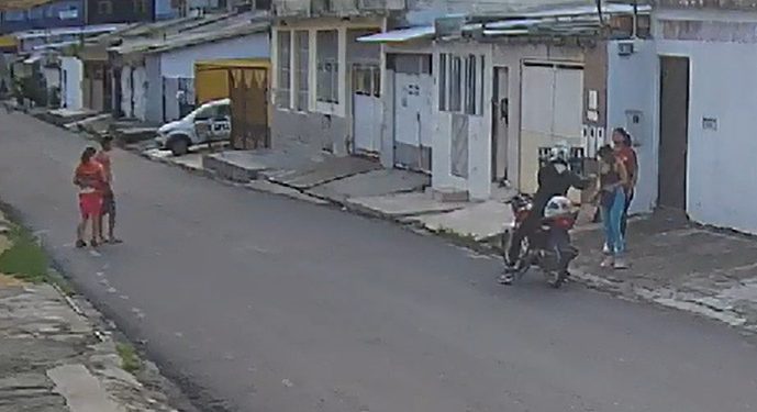 MANAUS – A polícia procura nesta terça-feira (17), quem é o criminoso que aparece nessas imagens abordando duas mulheres no bairro Cidade Nova, Zona Norte de Manaus. O assaltante parou a moto ao lado delas e levou um celular da jovem indefesa, mesmo na frente dos vizinhos, nesta segunda-feira (17).