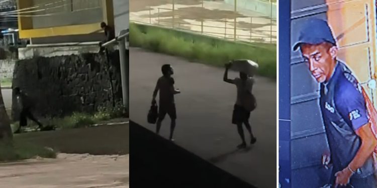 As imagens de câmeras de segurança e de vizinhos da academia mostra o momento do crime e ainda os bandidos fugindo de boa, com o produto do furto na cabeça.