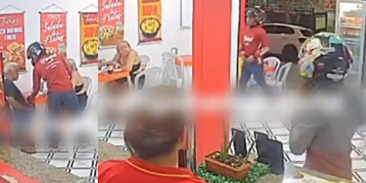 A moça ainda tentou salvar o celular, mas o bandido não perdoou e levou também. O caso foi levado para a polícia, com as imagens.
