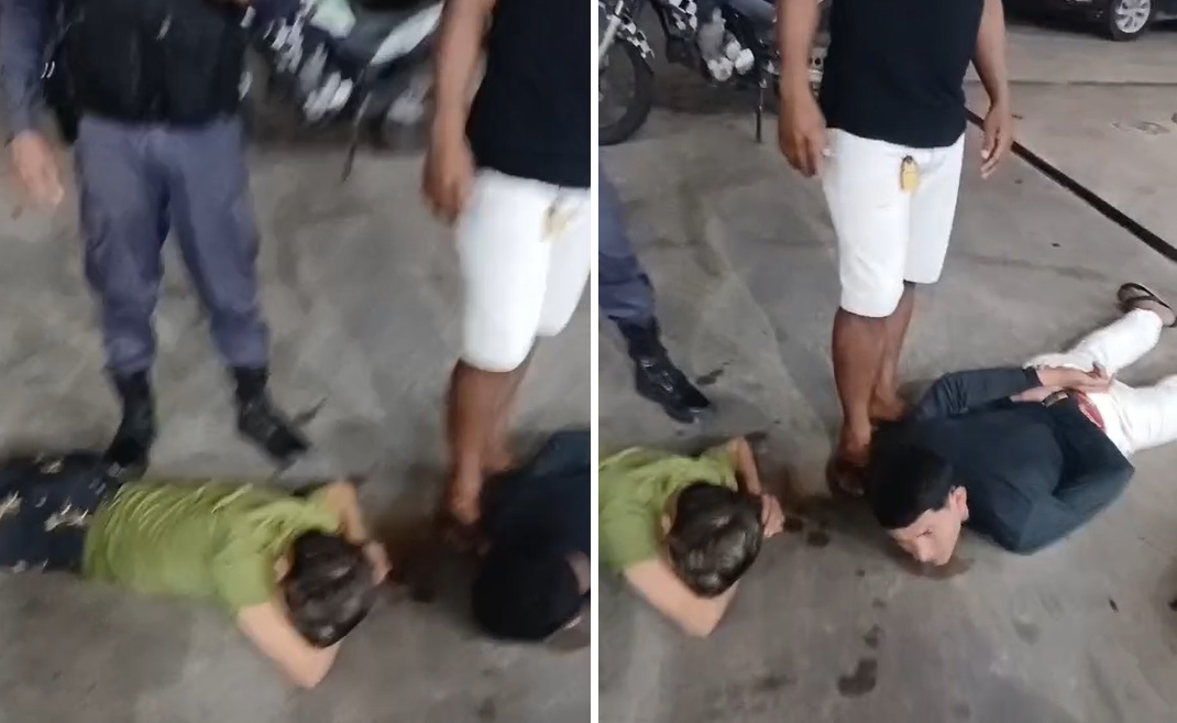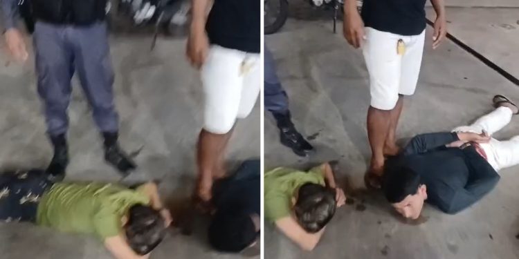 Vídeos compartilhados nas redes sociais mostram os dois no chão, de cara para baixo, sem que possam ser identificados. Um policial aparece nas imagens.