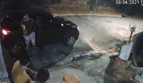 Imagens registradas por câmeras de segurança, mostram o momento em que um veículo, modelo o Renault Kwid, de cor preta, parou rapidamente, perto das vítimas. Um bandido sai do banco de trás com uma pistola e aborda os rapazes, que não reagem a ação criminosa e entregam seus pertences.