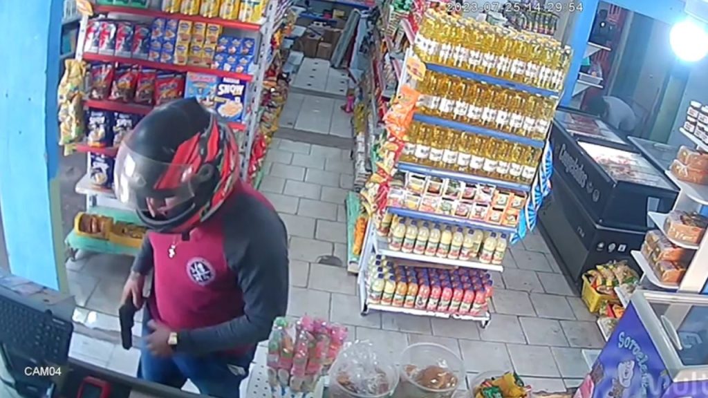 MANAUS (AM) – Os donos e funcionários de um mercadinho viveram momentos de terror nas mãos de um assaltante na tarde desta terça-feira (25). O comércio fica localizado na rua Antenor Cavalcante, bairro Zumbi dos Palmares, zona Leste de Manaus.
