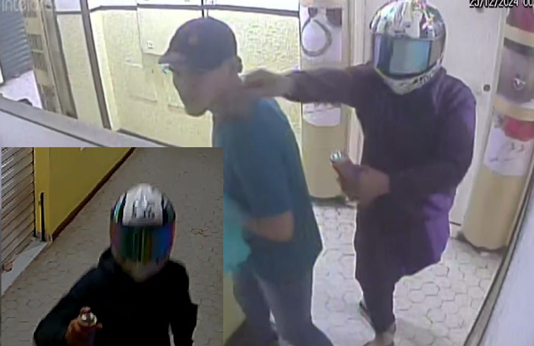 O caso aconteceu na noite de quarta-feira (25), no Centro de Manaus. Apesar de tentar esconder as imagens com spray e usar capacetes, o crime foi registrado. Ainda não se sabe o tamanho do prejuízo.
