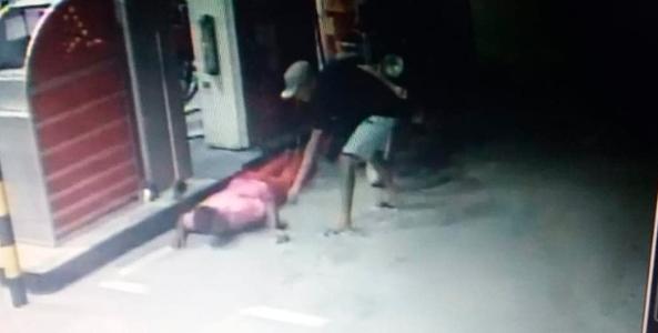 Câmeras de segurança registraram o momento em que a dupla em uma moto vão até o local para abastecer. Eles abordam o trabalhador e o ameaçam, pedindo que ele se deite no chão. Eles também leva toda o dinheiro do posto e os pertences da vítima.