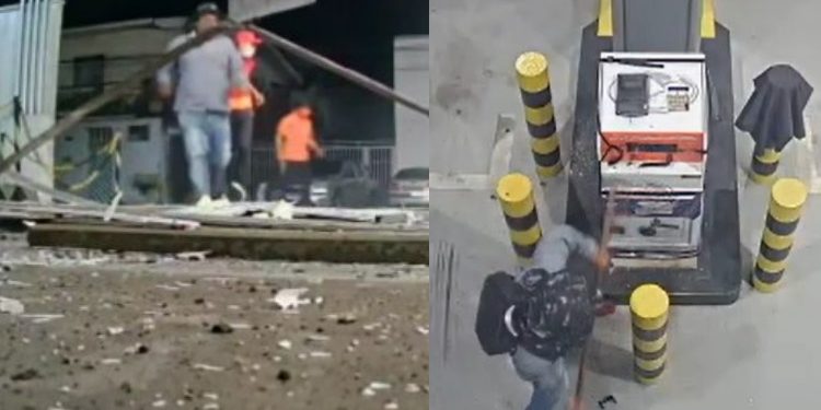 MANAUS – Cinco bandidos colocaram uma banana de dinamite na madrugada desta seguda-feira (27), em um cofre que fica em um posto de combustível na avenida Francisco de Queiroz, no Manoa, em Manaus, na tentativa de abrir o equipamento e levar todo o dinheiro do estabelecimento.