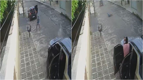 Uma câmera de segurança da rua filmou toda a ação. A dupla está em outro veículo e o adolescente é quem sai com a arma em punho em direção ao veículo, para render as vítimas. No entanto, ele é surpreendido a tiros porque um dos policiais dispara.