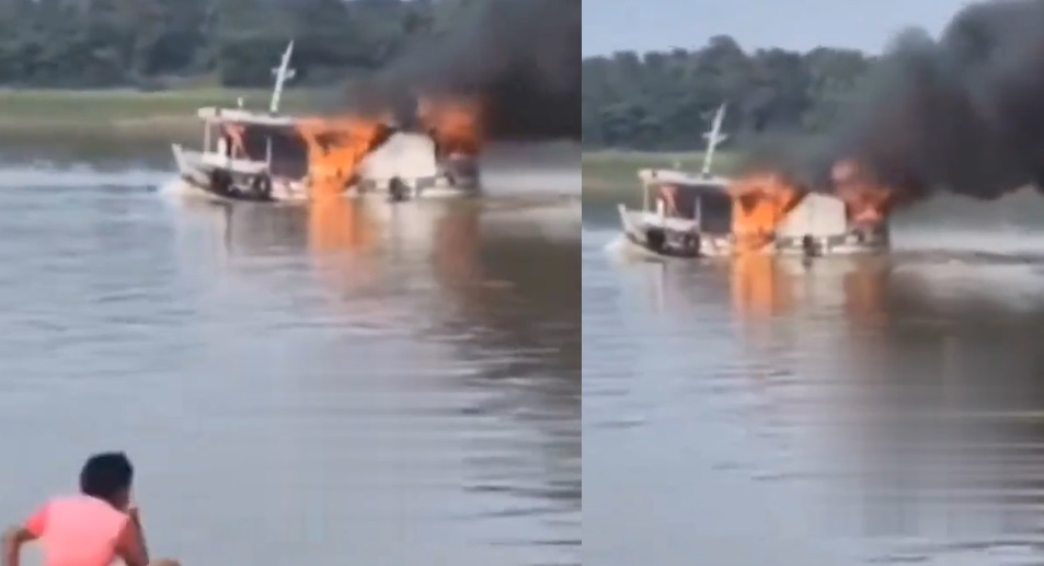 AMAZONAS – Nesta quinta-feira (24), um barco pegou fogo no meio do Rio Purus, em Beruri, Amazonas. O acidente foi compartilhado nas redes sociais e mostra que não houve chance de tentar fazer algo para salvar a embarcação.
