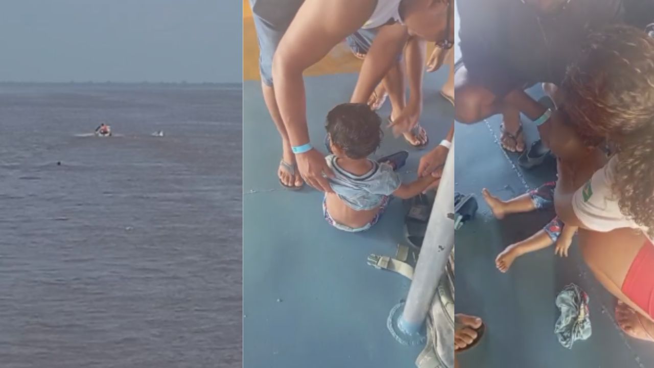 Por sorte, outras pessoas que estavam na embarcação viram o menino se rebatendo na água. Alguns passageiros pularam no rio e conseguiram salvar a criança. Um vídeo até mostra o desespero das pessoas ao verem o menino se afogando.