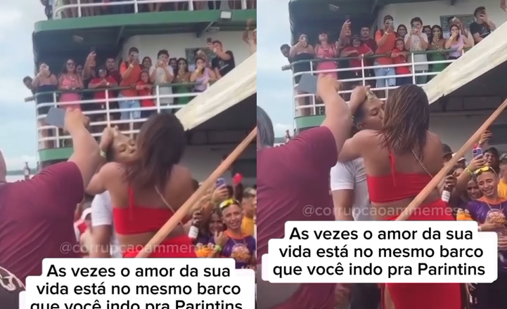 Nos vídeos que viralizaram, dá para ver a moça chegando com tudo no rapaz, deixando todo mundo ao redor em choque. A multidão no barco não só filmou como ainda deu aquela animada, com gritos, risos e muitos celulares filmando.