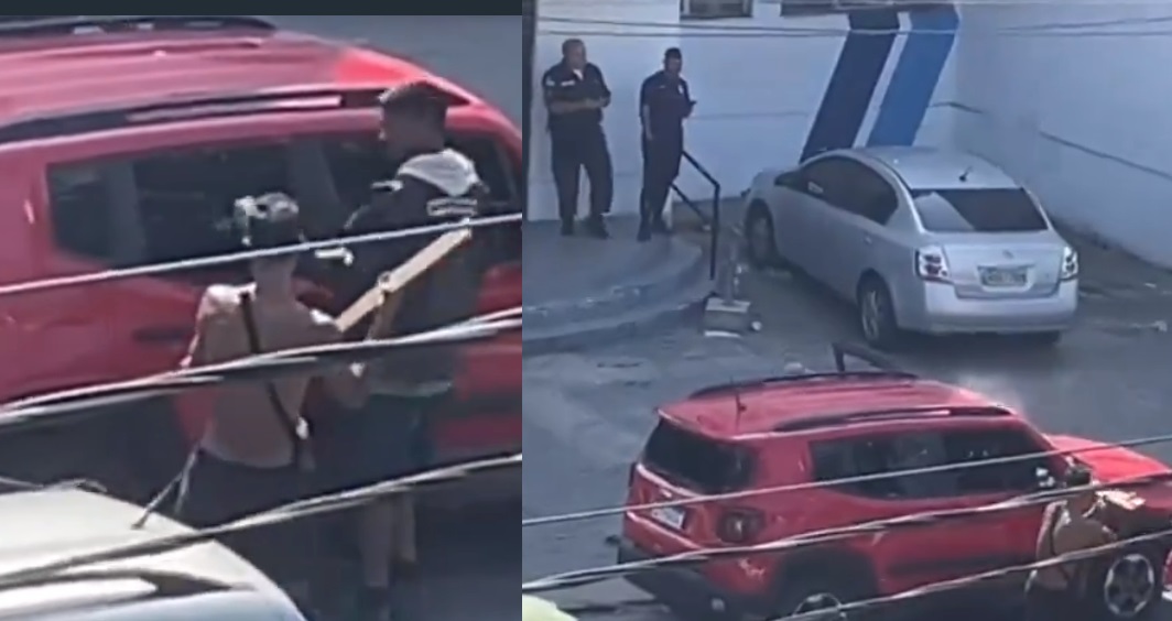 BRASIL – Um grupo de bandidos destruiu um carro na frente da delegacia e dos policiais, que nada fizeram. Aliás, fizeram: apenas filmaram.