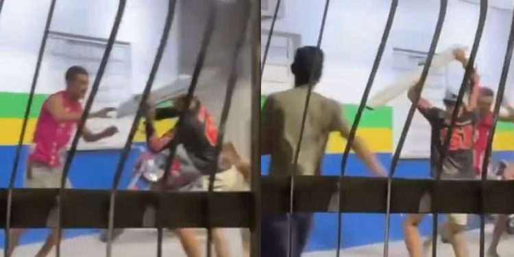 As imagens viralizadas nas redes sociais mostram os blindados trocando socos, chutes e até pauladas na ZL. Não se sabe o motivo da briga e nem se havia polícia na hora.