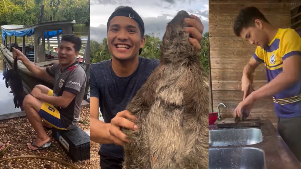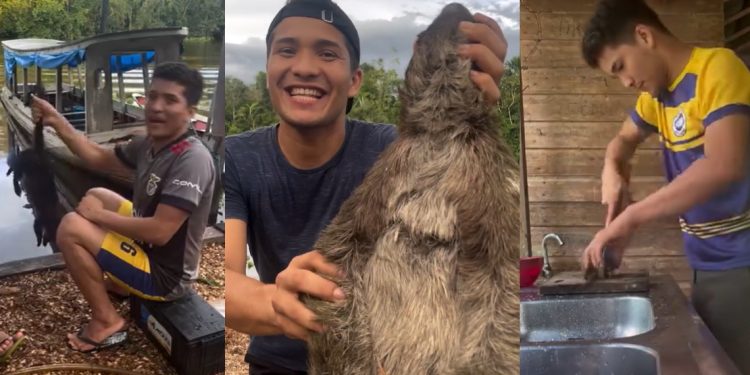AMAZÔNIA – O blogueiro paraense Luan Pinheiro está causando polêmica neste fim de semana, após viralizar preparando um guisado de bicho-preguiça, em Breve, no Marajó. Além do guisado do macaco, ela também ensina como se faz para comer quati e até mucura, o conhecido gambá da Amazônia.