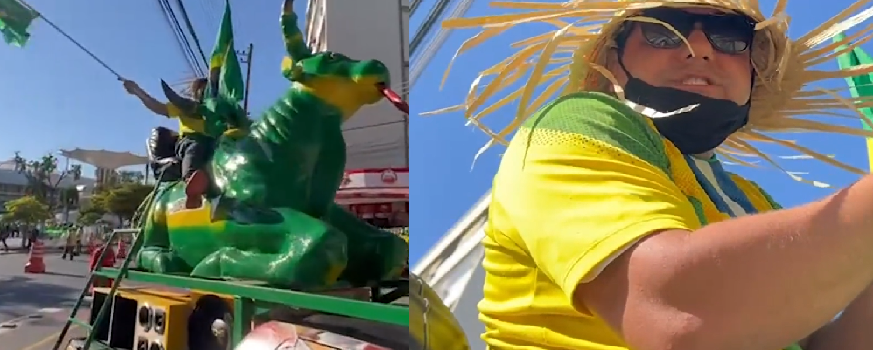 Animado, Carlos Henrique gritava o “gado chegou” e ainda balançava uma bandeira do Brasil. “Nós viemos fardados de gado porque é disso que a oposição nos chama. Estamos aqui para mostrar nossa humildade, que nós somos gado, mas gado patriota. Gado na sede de conquistar boas coisas pra nação brasileira”, disse o trabalhador, em entrevista ao Brasil de Fato.