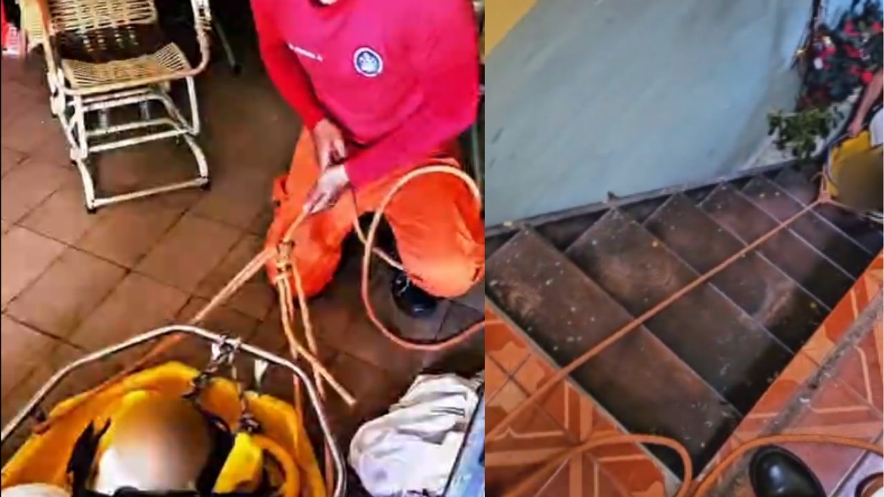 Os bombeiros atuaram em conjunto com o Serviço de Atendimento Móvel de Urgência (Samu), realizando a imobilização da vítima e utilizando técnicas específicas de amarração e segurança para garantir a remoção sem riscos adicionais.