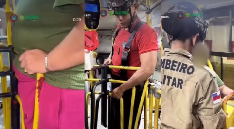 MANAUS (AM) – O Corpo de Bombeiros Militar do Amazonas foi acionado na noite desta quinta-feira (10) para uma ocorrência inusitada dentro do transporte público da linha 016, no bairro Redenção, Zona Oeste de Manaus. Uma mulher com obesidade ficou presa na catraca.