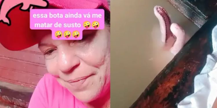 AMAZONAS – Um boto-cor-de-rosa apareceu na cozinha de uma mulher no Rio Solimões nesta quarta-feira (30), enquanto ela lavava louça. A cena viralizou nas redes sociais. Dona Jeuza pegou o celular e registrou o momento inusitado na Amazônia.