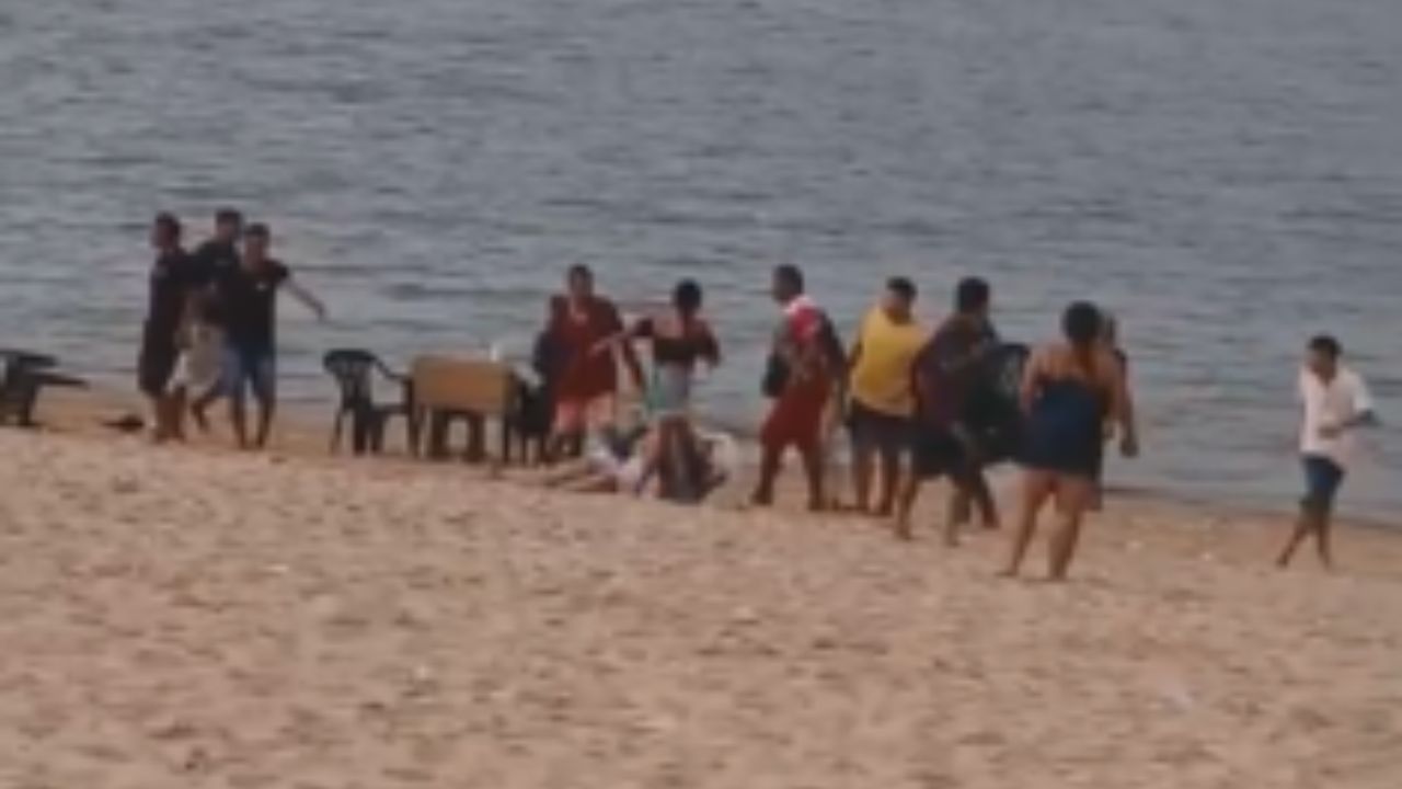 De acordo com informações, o caso ocorreu após a 43ª Festa do Guaraná. Várias pessoas aparecem na praia quando uma confusão generalizada se inicia.