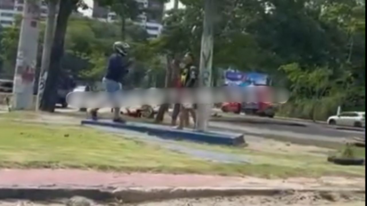 MANAUS (AM) – Dois motociclistas se envolveram em uma briga que terminou em confusão generalizada nesta sexta-feira (31), em Manaus. O caso ocorreu em um ponto de espera usado por entregadores de aplicativo e foi registrado por motoristas que passavam pela via.