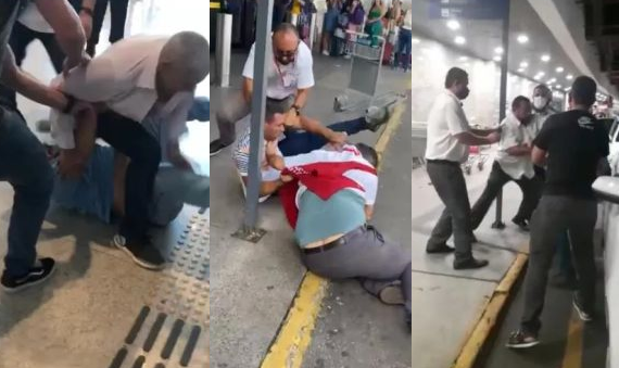 FORTALEZA – A disputa por passageiros no Aeroporto Internacional de Fortaleza terminou em porrada neste final de semana. Um vídeo mostra vários motoristas se agredindo no meio de malas, carros e passageiros, que ficam assustados.