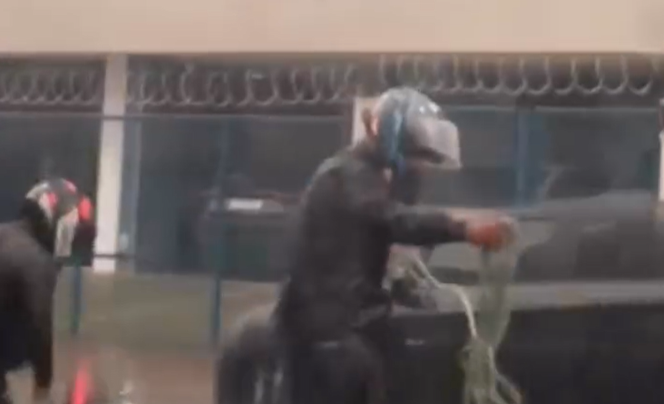 Imagens registradas por um motorista mostram o momento em que a vítima tenta retirar a moto do buraco. Pouco depois, ocupantes de outro veículo param e usam uma corda para ajudar a puxar a motocicleta.