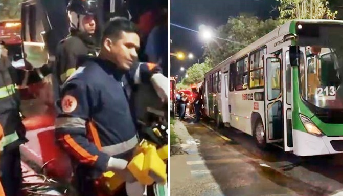 MANAUS (AM) – Uma colisão de grande impacto entre um micro-ônibus e um ônibus coletivo da linha 213 resultou em nove vítimas feridas na avenida Rodrigo Otávio, no bairro Japiim, Zona Sul da capital, na noite de sexta-feira (14). O acidente, que exigiu uma operação complexa de socorro, mobilizou equipes do Corpo de Bombeiros e do Serviço de Atendimento Móvel de Urgência (Samu).
