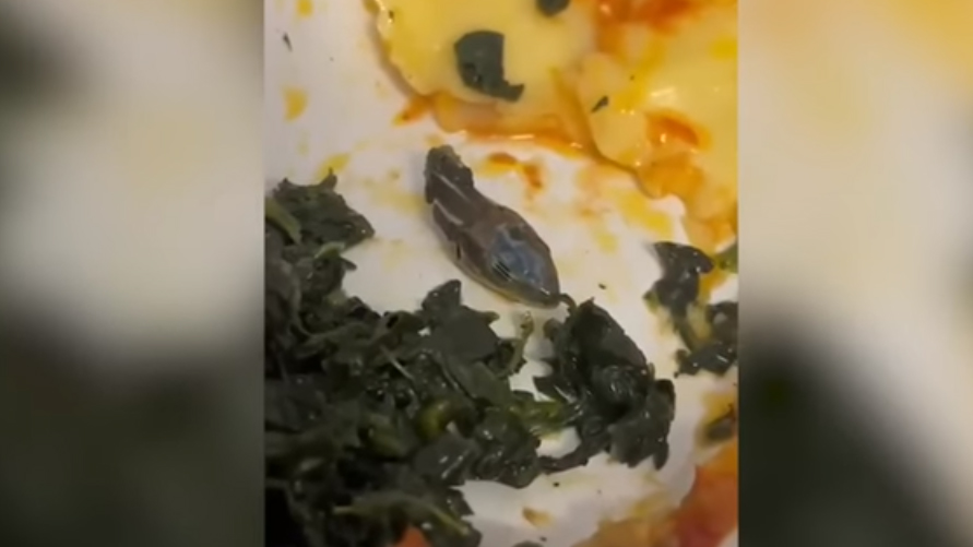Segundo a funcionária, ela comia a refeição servida para a tripulação quando encontrou a cabeça no meio dos vegetais. Tudo foi registrado em vídeo.
