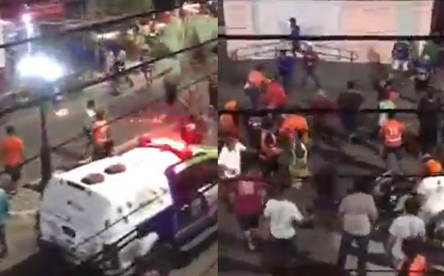 Até pedaços de madeira de bandeiras foram usadas na rua. Não se sabe quem começou a briga e nem a motivação. Uma viatura da polícia apareceu no meio da treta para acabar com o duelo.