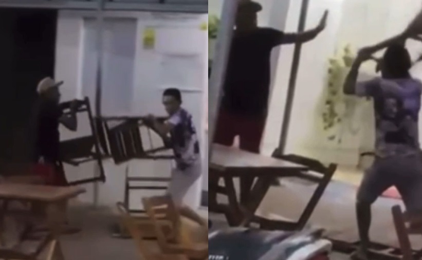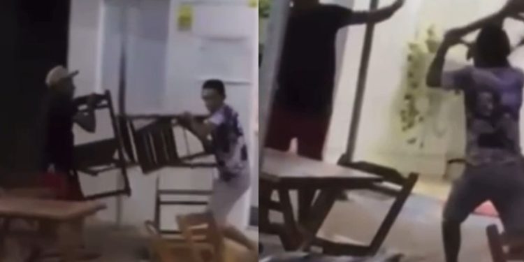 BRASIL – Dois amigos de copo foram pegos brigando com as cadeiras do bar após uma noitada de cachaça em Salvador, neste domingo (5).