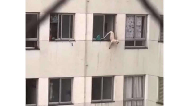 SÃO PAULO | Um cachorro foi flagrado pendurado na janela do 10° andar de um prédio em São José dos Campos (SP), na segunda-feira (4). De acordo com as informações do G1, o animal teria se assustado com a forte chuva que atingiu a região, ficou agitado e acabou com as patas presas na tela de proteção do apartamento.
