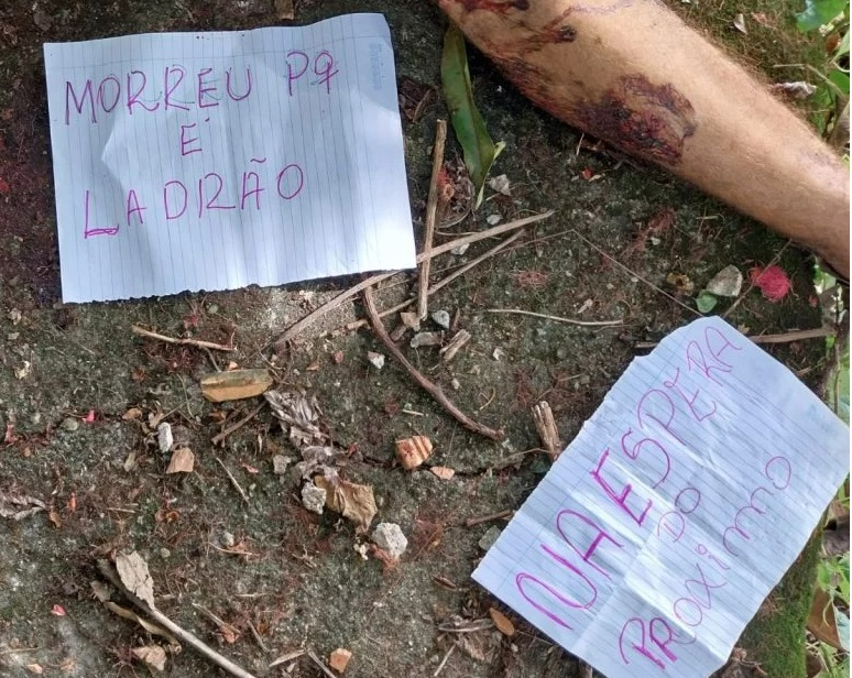 A vítima foi identificada pelo irmão e tinha dois bilhetes ao lado do corpo. ‘Morreu pq é ladrão” e “a espera do próximo”, escritos à mão. Ele e o irmão seriam moradores de rua que vieram de Humaitá para Manaus.