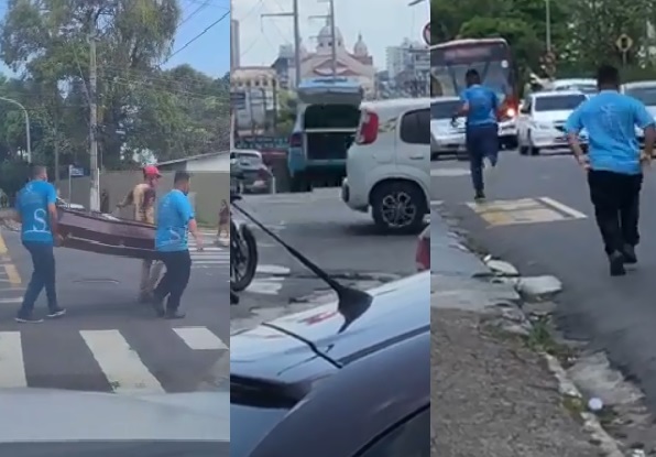 MANAUS – AM | Nesta segunda-feira (31), funcionários da funerária São Francisco passaram por momentos de tensão, ao precisarem “resgatar” um caixão que acabou caindo do carro funerário no meio de uma avenida em Manaus. O caso ocorreu na avenida Tefé, no bairro Cachoeirinha, zona Sul da cidade.