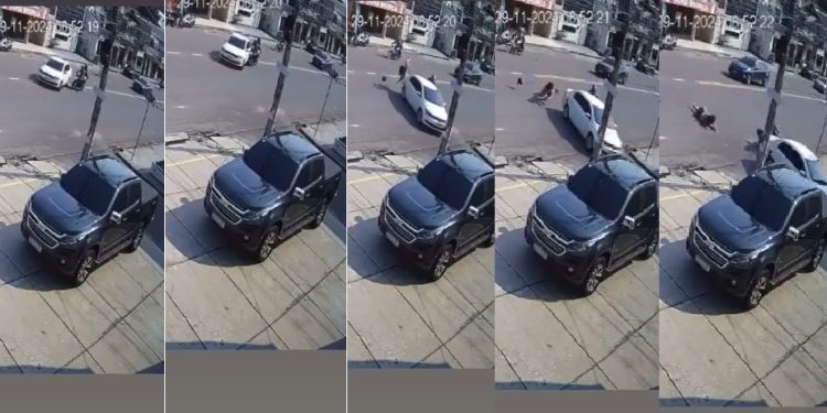 MANAUS – Câmera de segurança que fica no bairro Raiz, Zona Sul de Manaus, pegou o exato momento em que um Voyage fez a conversão irregular e acertou uma moto nesta sexta-feira (29).