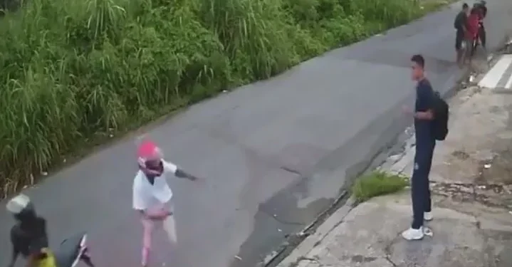 Imagens capturadas por câmeras de segurança mostram o momento em que as vítimas seguiam para o trabalho e para a escola quando foram abordadas por quatro criminosos que chegaram em duas motocicletas.