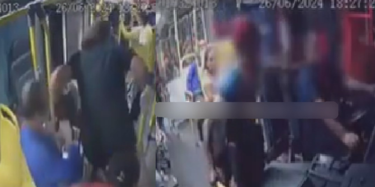 Os passageiros entram em pânico e começam a correr e pular a catraca. A vítima sangra bastante no rosto e com uma das mãos tenta estancar o sangramento e com a outra tenta localizar o celular para entregar ao bandido que insiste que ele entregue, mesmo sendo difícil a visualização com o sangue escorrendo.
