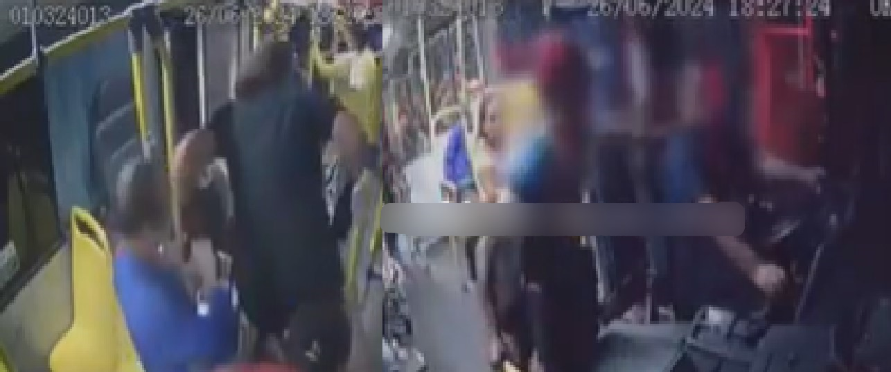 Nas imagens, dois assaltantes ainda não identificados entram no transporte já anunciando o assalto. Um deles aparece com uma faca e vai para cima de Erlan que, dirigindo, nem teve tempo de colocar as mãos no rosto ou entender o que estava acontecendo.