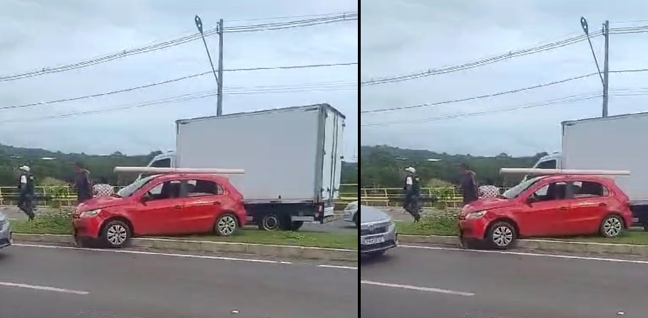 O incidente na via que liga as zonas sul, leste, norte e oeste de Manaus deu o que falar. De acordo com testemunhas no local, o caminhão estava a caminho da zona norte e o motora não conseguiu parar o veículo, que aparentemente está com problemas de freio.