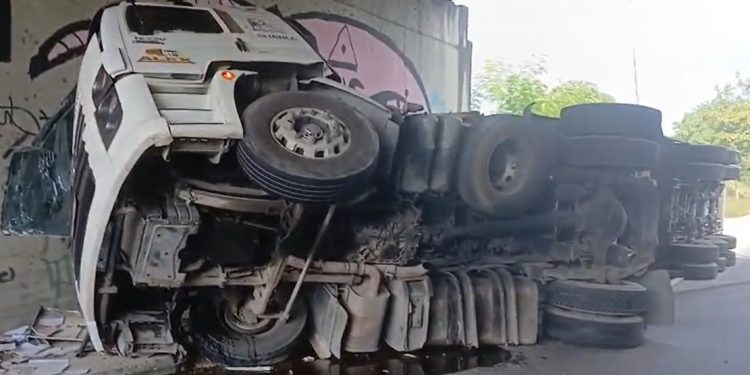 MANAUS – Um caminhão tombou nesta quarta-feira (23) em plena avenida Max Teixeira, e ficou embaixo do viaduto na zona Norte de Manaus. por muita sorte ninguém foi atingido.